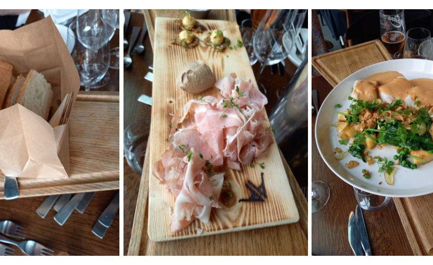 Vaaghals beskriver selv konseptet sitt som møteplassen mellom unike norske råvarer og kontinentale retter. Vi fikk mat både i papirposer og på brett og godt i glasset til for de som ønsket det.